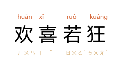 例如:「胜利的消息从前线传来,大家听了都欢喜若狂。」