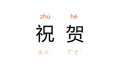 引巴金 《三次画像》:“我祝贺他成功地画出了他的精神状态,表现了他的‘愉快’,他的‘勤奋’,他的‘对我们这个时代的信心’。”康濯 《水滴石穿》第三章:“申玉枝 和 张永德 倒没怎么回看后坡的风光,只是不时地跟西来的熟人打打招呼,互相祝贺春节。”