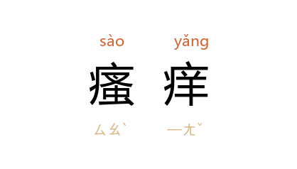 引清 蒲松龄 《聊斋志异·莲香》:“数日,遍体瘙痒,皮尽脱。”《医宗金鉴·外科心法要诀·阴虱疮》:“阴虱疮虫毛际内……瘙痒抓红含紫点。”注:“此疮一名八脚虫,生于前阴毛际内……瘙痒难忍,抓破色红,中含紫点。”