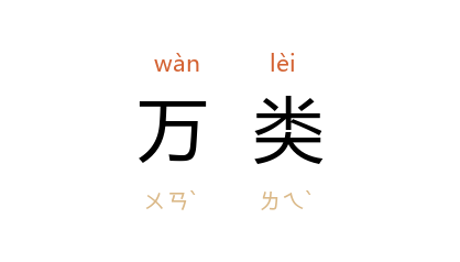 引《鬼谷子·捭阖》:“筹策万类之终始。”晋 张华 《鹪鹩赋》:“何造化之多端兮,播羣形於万类。”唐 韩愈 《谢自然诗》:“人生处万类,知识最为贤。”明 王廷陈 《咏怀》:“万类殊所嗜,物岂慕非伦。”毛泽东 《沁园春·长沙》词:“鹰击长空,鱼翔浅底,万类霜天竞自由。”