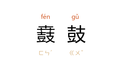 引《书·顾命》:“胤 之舞衣,大贝、鼖鼓在西房。”《周礼·考工记·韗人》:“鼓长八尺,鼓四尺,中围加三之一,谓之鼖鼓。”郑玄 注:“大鼓谓之鼖。以鼖鼓鼓军事。”宋 吴自牧 《梦粱录·郊祀年驾宿青城端诚殿行郊祀礼》:“鼖鼓景鐘催节奏,洪声考击彻青冥。”章炳麟 《官制索隐》:“而鼖鼓、赤刀、 兑 之戈, 和 之弓、 垂 之竹矢,则讲武之具也。”