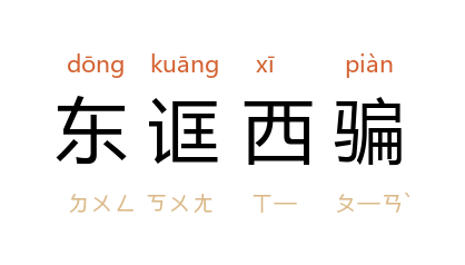 引明 无名氏 《东篱赏菊》第二折:“若论我,半个字也不识。若説道抵换官物、盗使印信,东誆西骗,天下跑魁。”《金瓶梅词话》第三八回:“应二哥,银子便与他,只不叫他打着我的旗儿,在外边东誆西骗。”