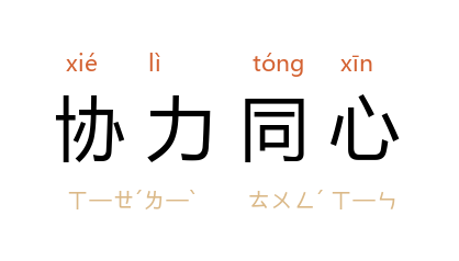 引《旧五代史·卷一〇三·汉书·隐帝本纪下》:「协力同心,安邦定国。」《三国演义·第一回》:「明日当于园中祭告天地,我三人结为兄弟,协力同心,然后可图大事。」