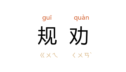 ⒈ 以善言劝诫。《文明小史》第五九回:「邹绍衍是个热心人,见冲天砲维新习气过深,时时想要劝化他,常于闲谈的时候乘机规劝。」也作「规谏」。