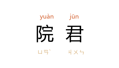 ⒈ 即县君。本为对有封号的妇女的称呼。后来一般富户的妻子也称“院君”。