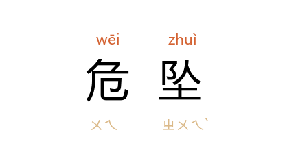 引《管子·牧民》:“民恶危坠,我存安之;民恶灭絶,我生育之。”《三国志·魏志·武帝纪》:“致届 官渡,大歼丑类,俾我国家拯於危坠。”宋 范仲淹 《再奏乞两府兼判议》:“国家当令大臣,各竭其力,以持危坠之势。”