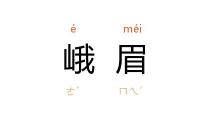 ⒈ 也写作峨嵋、峩眉。山名。在四川峨眉县西南,因山势逶迤,有山峰相对如蛾眉,故名。佛教称为光明山,道教称为“虚灵洞天”、“灵陵太妙天”。其脉自岷山绵延而来,突起为大峨、中峨、小峨三峰。顶部为玄武岩覆盖,有峨眉宝光、舍身崖、洗象池、龙门洞等胜匚与浙江普陀山、安徽九华山、山西五台山并称为我国佛教四大名山。又山东、河南、安徽、福建、广西等省亦有形如蛾眉,以“峨眉”为名的山。