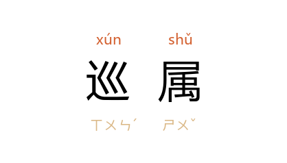 引唐 柳宗元 《谢李中丞安抚崔简戚属启》:“绳愆纠繆,列郡肃澄清之风;匡困资无,闔境知噢咻之德。凡在巡属,庆惧交深。”《资治通鉴·后唐庄宗同光三年》:“请 唐 兵不入境,当举巡属内附;苟不如约,则背城决战以报本朝。”《醒世姻缘传》第十二回:“他又不时戴了顶巾,骑了匹骡子,跟了一两个人,在那巡属十八州县里边不歇的私行。”
