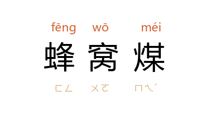 ⒈  用煤末掺适量黏土加水和匀,模压成的短圆柱形燃料,有许多上下贯通的孔。因其形似蜂窝,故称。
