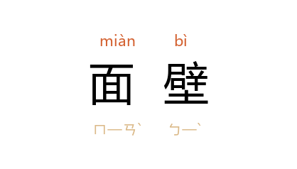 英语to face the wall, to sit facing the wall in meditation (Buddhism), (fig.) to devote oneself to study, work etc