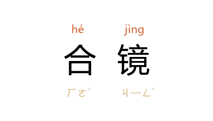 ⒈ 南朝 陈 徐德言 娶 陈后主 妹 乐昌公主,时 陈 政方乱, 德言 知国破时两人不能相保,乃破镜与妻各执其半,以为异日凭证。及 陈 亡,其妻没入 杨素 家, 德言 亦流落至京。有苍头卖半镜, 德言 出半镜合之,因访得其妻,重为夫妇。事见 唐 孟棨 《本事诗·情感》。后因谓夫妇离而复合为“合镜”或“破镜重圆”。
