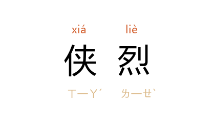 引南朝 宋 袁淑 《效子建白马篇》诗:“侠烈良有闻,古来共知然。”《儿女英雄传》第七回:“如今听了那个老头儿的一番话,早又动了他一个侠烈心肠。”刘师培 《文说》:“又如 刘玄 以侠烈著闻,而 范 史力言其懦弱。”