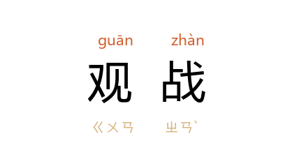 ⒈ 从旁观看战争、战斗、体育竞赛,自己不参加。