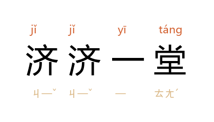 例如:「开会时,许多专家学者济济一堂,共研良策。」