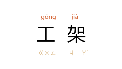 ⒈ 演出戏剧时,表演者所表演的身段姿势。也作「功架」。