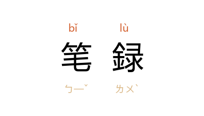 例如:「他随身带著一本笔记本,以便随时笔录心得感想。」