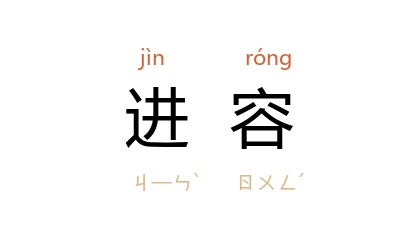 引《仪礼·士冠礼》:“宾右手执项,左手执前进容。”郑玄 注:“进容者,行翔而前鶬焉。”阮元 校勘记:“毛 本鶬作蹌。”《天雨花》第十八回:“众夫人细细看 仪贞,都向 左夫人 赞道:好位千金真贵人!进容佔断乾坤色,贞节流芳百世称;端庄严重多礼貌,相门家教果非轻。”