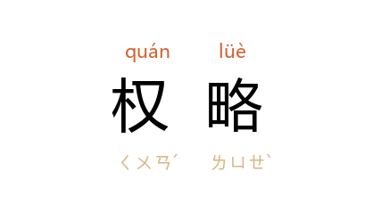 ⒈ 机变的策略。三国魏·曹丕〈至广陵于马上作〉诗:「量宜运权略,六军咸悦康。」也作「权谋」。