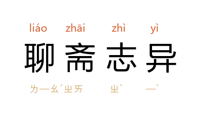 ⒈ 书名。大部分为清蒲松龄所撰,一小部分出自他人手笔。全书分为八卷或十六卷,共四百三十一篇。聊斋为蒲松龄的书房,志异是说记录一些怪异的事情,借鬼狐之事,抒发对现实政治、社会的不满。描写委婉,文笔精炼,条理井然,为我国著名的短篇小说集。