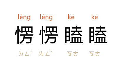 ⒉ 想睡觉、神智不清的样子。也作「楞楞睁睁」。