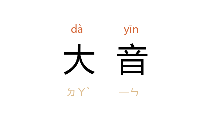 ⒈ 《老子》:“大方无隅,大器晩成,大音希声。”希声,无声。意谓至大之音则不辨宫商,犹如无声。后以“大音”指美妙的乐音。