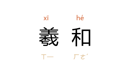 ⒊ 古代神话传说中的人物。太阳的母亲。 《山海经·大荒南经》:“东南海之外, 甘水 之间,有 羲和之国。有女子名曰 羲和,方浴日於 甘渊。