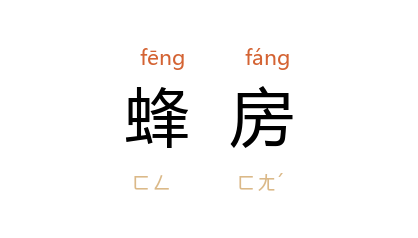 ⒉ 蜜蜂用分泌的蜂蜡造成的六角形的巢;像蜂一样的。