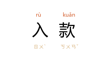 ⒈ 收进的款项钱财。