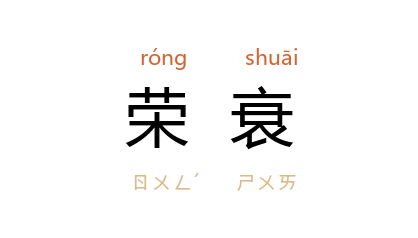 引南朝 宋 鲍照 《梦还乡》诗:“波澜异往復,风霜改荣衰。”唐 黄滔 《景阳井赋》:“渔樵汲引,荆棘荣衰。”清 顾炎武 《太原寄王高士锡阐》诗:“异地各荣衰,何繇共言宴。”