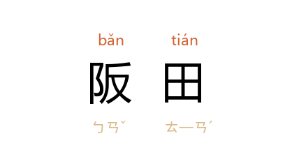 引《诗·小雅·正月》:“瞻彼阪田,有菀其特。”高亨 注:“阪田,山坡上的田。”宋 王安石 《送彦珍》诗:“挟筴穷乡满鬢丝,阪田荒尽岂尝窥。”