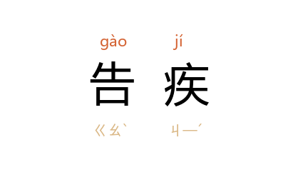 引北魏 郦道元 《水经注·阴沟水》:“太祖 作议郎,告疾归乡里。”宋 叶适 《故昭庆军承宣使崇国赵公行状》:“公 淳熙 十四年七月三十日薨于位,年六十七。先告疾也,请‘罢户部不候岁终先行比较指挥’。”