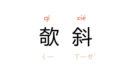 引汉 陆贾 《新语·怀虑》:“管仲 相 桓公,詘节事君,专心一意,身无境外之交,心无欹斜之虑,正其国如制天下。”唐 高适 《重阳》诗:“岂有白衣来剥喙,亦从乌帽自欹斜。”宋 苏辙 《再赋葺居》之三:“南北高堂本富家,百年梁柱半欹斜。”清 纳兰性德 《锦堂春·秋海棠》词:“夜来微雨西风里,无力任欹斜。”朱自清 《儿女》:“桌子上是饭粒呀,汤汁呀……加上纵横的筷子,欹斜的匙子,就如一块花花绿绿的地图模型。”
