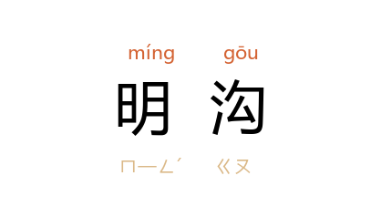 ⒈ 明露于地面,无盖的水沟。