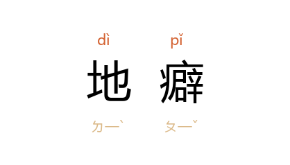 引《旧唐书·卷一八七·忠义传下·李憕传》:「憕丰于产业,伊川膏腴,水陆上田,修竹茂树,自城及阙口,别业相望,与吏部侍郎李彭年皆有地癖。」《幼学琼林·卷三·贫富类》:「好置田宅,谓之『地癖』。」