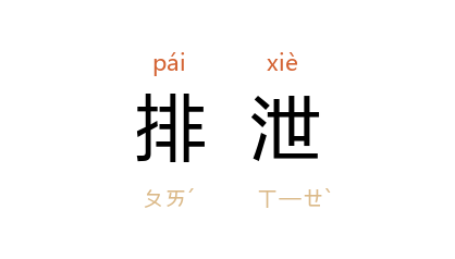 ⒉ 生物把体内残废无用的物质排出体外。如动物由肺部呼出二氧化碳,由肾脏和汗腺排出尿、汗,以及植物将多余水分和矿物质排出体外,皆称为「排泄」。也作「排泄」。