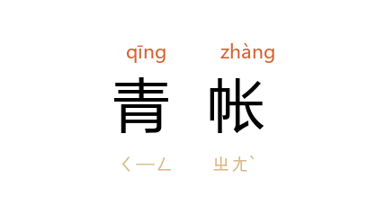 ⒉ 青色的供帐。古代供迎送接待的临时设施。