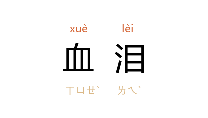 ⒊ 又如:血泪史;血泪账。又比喻惨痛的遭遇。