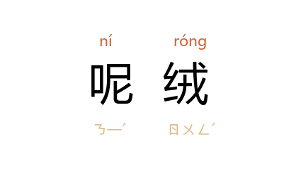 引清 姚衡 《寒秀草堂笔记》卷三:“上好大呢绒,红黄蓝各色四十四匹。”郭沫若 《洪波曲》第十一章六:“内容决定形式,呢绒哔叽换成了阴丹士林,不也就是一项极显明的形象化吗?”