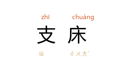 ⒈ 支撑在床上。 南朝 宋 刘义庆 《世说新语·德行》:“王戎、和嶠 同时遭大丧,俱以孝称。