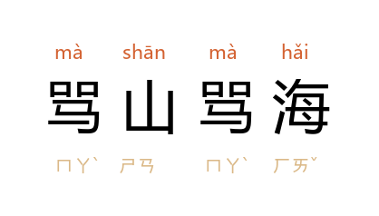 引《何典》第二回:“﹝ 破面鬼 ﹞正诈酒三分醉的在戏场上耀武扬威,横衝直撞的駡海駡山。”亦作“駡海駡”。 《何典》第九回:“﹝ 黑漆大头鬼 ﹞把件湿布衫敞开,露出那墨测黑的胸膛,上街撇到下街的駡海駡。”