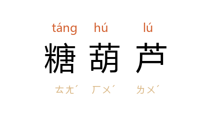 ⒈ 亦称“冰糖胡芦”。食品名,用竹签把山楂等果穿成串,蘸上白糖、冰糖、麦芽糖浆等。