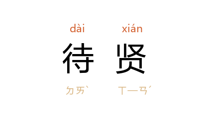 引《晋书·段灼传》:“自 穆公 至於 始皇,皆能留心待贤,远求异士。”南朝 齐 王融 《永明九年策秀才文》:“或扬旌求士,或设簴待贤。”《隋书·李德林传》:“李徵 曰:‘ 德林 久滞絳衣,我常恨 彦深 待贤未足。’”