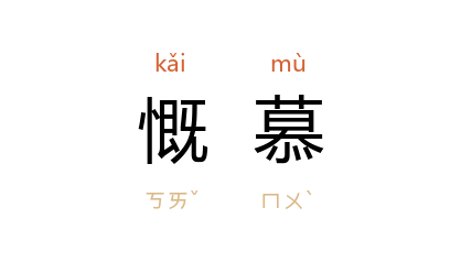 引唐 李翱 《谢杨郎中书》:“临空文尚慨慕如不足,况亲遇厥事观厥人哉,幸甚,幸甚!”明 屠隆 《綵毫记·为国荐贤》:“才子声名人慨慕,动君王玉帛安车。”《清史稿·礼志四》:“子孙臣庶,躬被教育者,宜其謳歌慨慕而未有已也。”