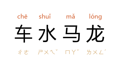 注音ㄔㄜ ㄕㄨㄟˇ ㄇㄚˇ ㄌㄨㄥˊ
