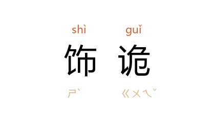 引明 王守仁 《传习录》卷中:“彼视学舍如囹狱而不肯入,视师长如寇仇而不欲见,窥避掩覆以遂其嬉游,设诈餙诡以肆其顽鄙。”《明史·宋玫传》:“陛下求治之心愈急,则浮薄喜事之人皆饰诡而钓奇。”