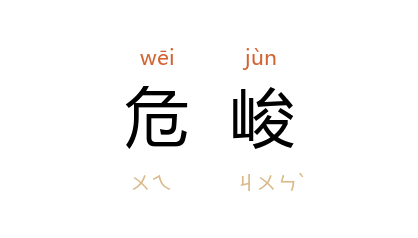 引北魏 郦道元 《水经注·濡水》:“东南歷石挺下,挺在层峦之上,孤石云举,临崖危峻,可高百餘仞。”明 徐弘祖 《徐霞客游记·粤西游日记二》:“践棘而登,洞门岈然……不甚宽宏,而以危峻逼裂见奇者也。”