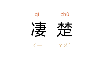 凄凉悲哀。 唐 郑棨 《开天传信记》:“其曲凄楚动人,杳杳在耳。”