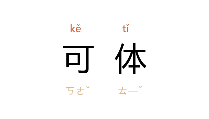 引《董西厢·卷七》:「青衫忒离俗,裁得畅可体。」《扬州梦·第二折》:「可体样春衫亲手儿缝,有滋味珍馐拣口儿供。」