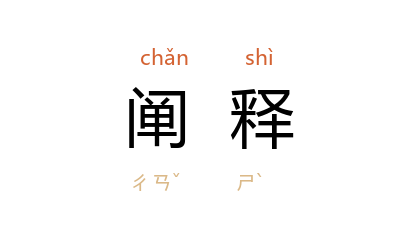 引晋 葛洪 《抱朴子·嘉遁》:“幽赞太极,阐释元本。”《人民日报》1991.4.6:“在此基础上,对 马克思 这20个问题的答覆逐一作出了详尽而有说服力的阐释。”