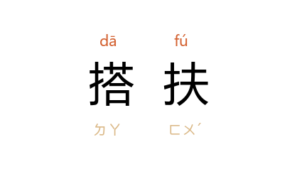引元 无名氏 《连环计》第二折:“我见他手纤纤搭扶着丁香树儿喘。”《水浒传》第四二回:“到三更时候,又有二百餘人把庄门开了,将我搭扶上轿,抬了。”
